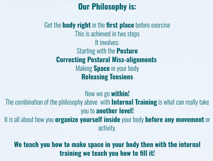 We are Correcting Posture by Aligning the 4 Bodies: Creating Space in the Mind, Body, and Spirit, and Constructing Stability and Power in the Human Form.